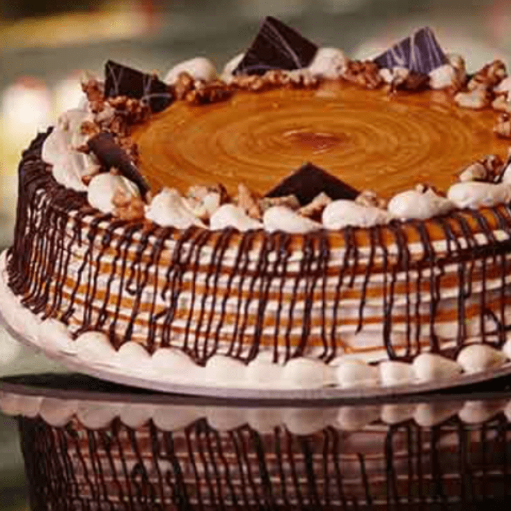 Our Caramel Chocolate Delight Cake features layers of moist chocolate sponge infused with luscious caramel swirls, creating a symphony of flavor that dances on the palate with each sumptuous slice.