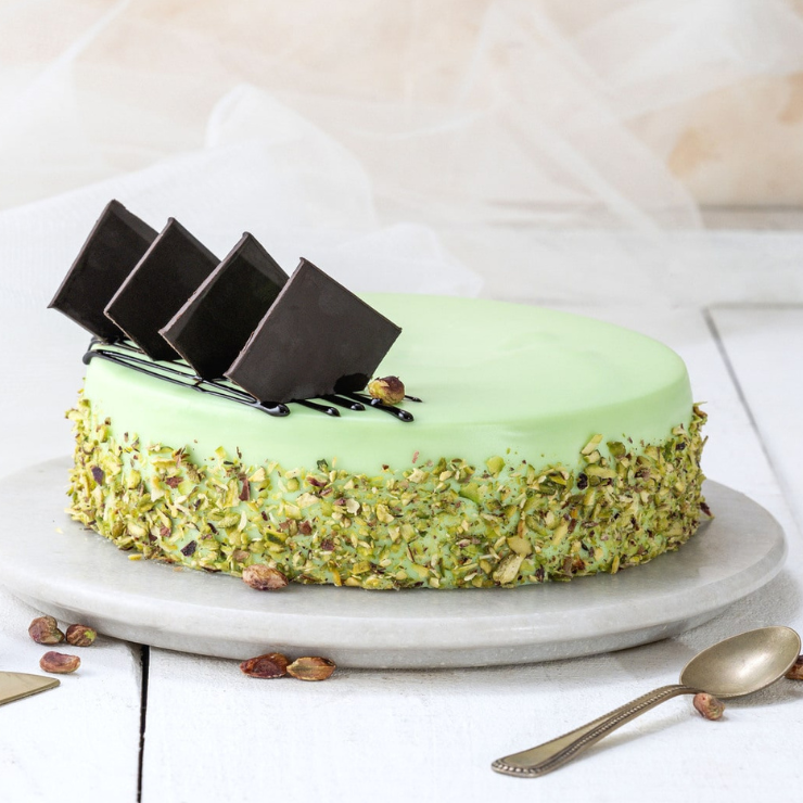 Our Pistachio Perfection Cake, a delectable creation that celebrates the rich flavor and delicate crunch of pistachios, promising a taste experience that delights the senses with every divine bite.