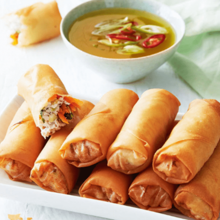 Crisp Chicken Spring Roll, filled with seasoned chicken, a delightful snack for any occasion.