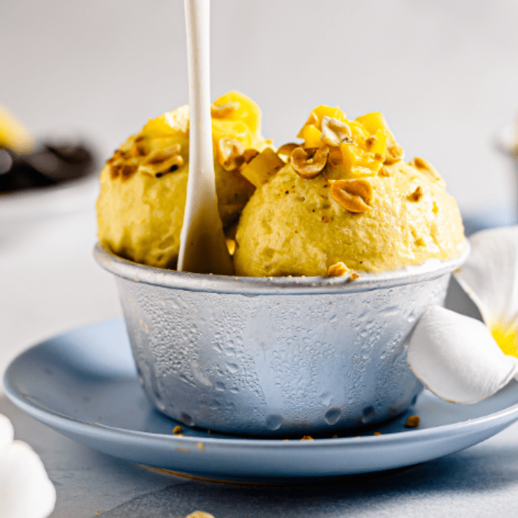 Indulge in the lusciousness of Mango ice cream, capturing the essence of ripe, juicy mangoes.