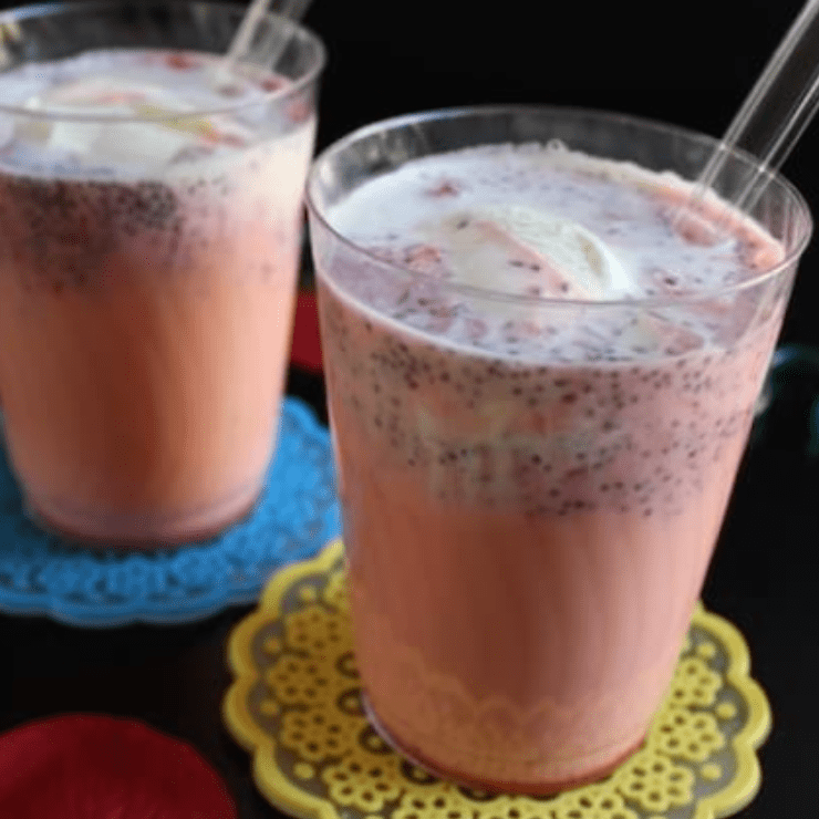 Delight in the floral aroma of Rose Milk, a refreshing and fragrant beverage to cool your senses.