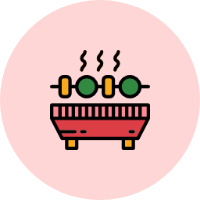 Skewered and grilled chicken pieces basted in smoky BBQ sauce, served with a side of pineapple chutney.