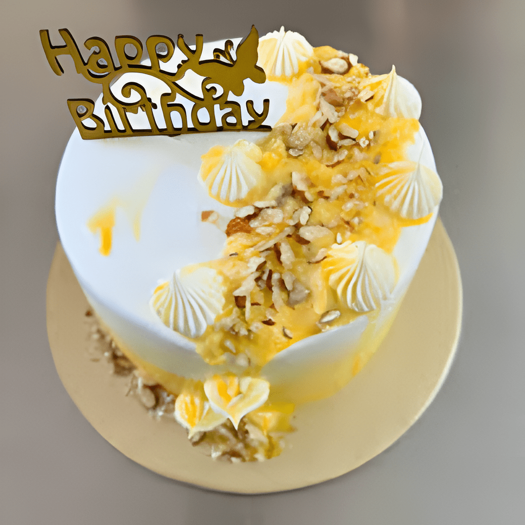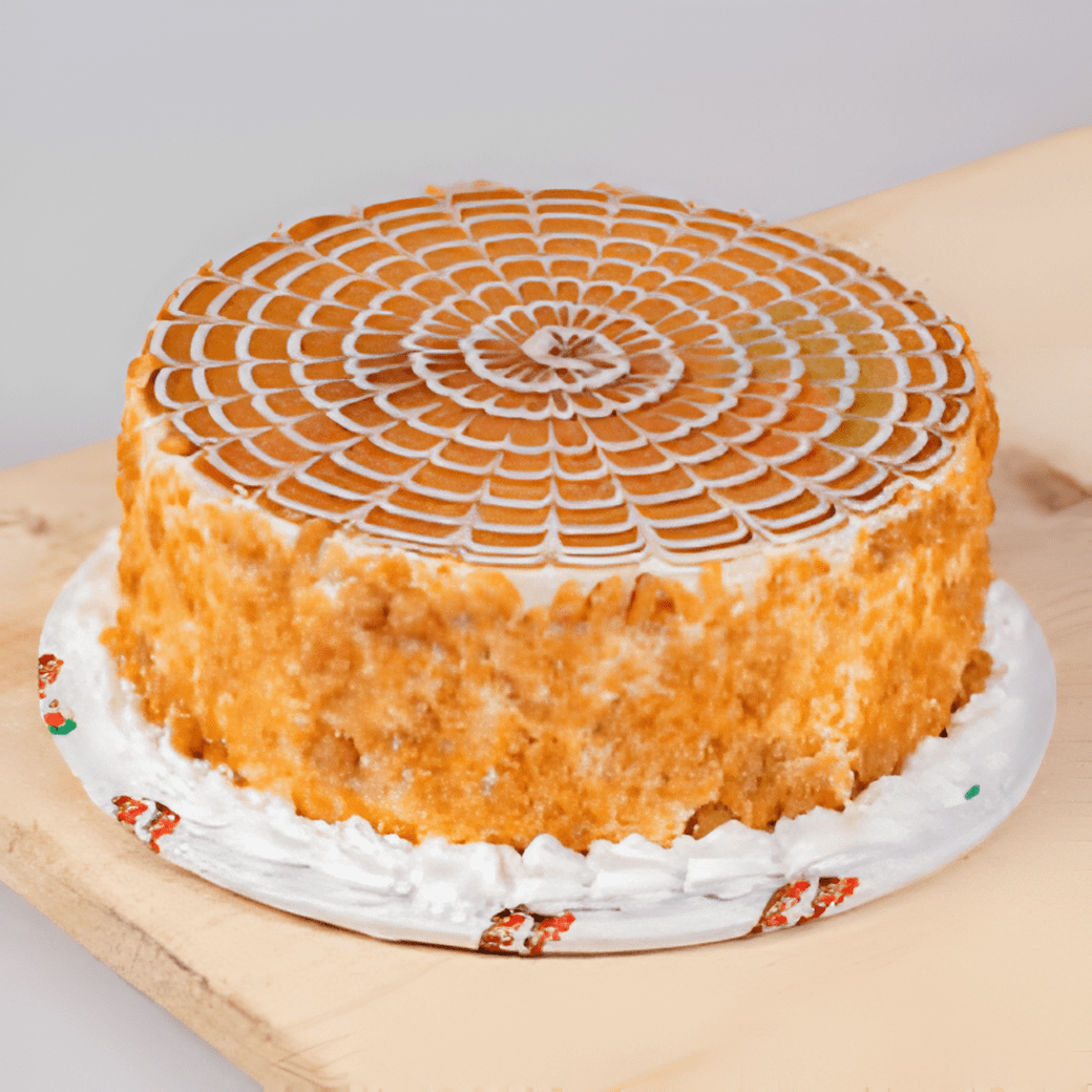 Our Butterscotch Cake is an irresistible 4 kg dessert with layers of fluffy sponge cake and creamy butterscotch frosting. Adorned with a decadent caramel drizzle and crunchy butterscotch bits, it’s a luxurious and delightful treat for any celebration.
