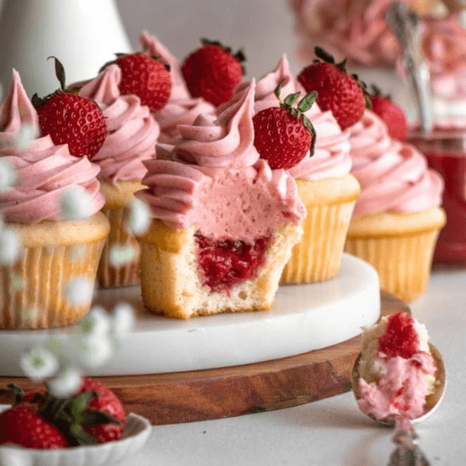 Our Strawberry cupcakes are light and fluffy, bursting with fresh strawberry flavor, and topped with a sweet strawberry frosting for a delightful, fruity treat.