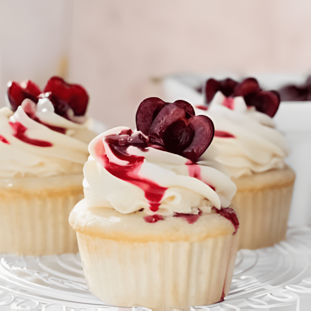 Our White Chocolate Cherry cupcakes feature a soft, vanilla cake studded with juicy cherries and topped with a creamy white chocolate frosting, offering a sweet and fruity flavor combination in every bite.
