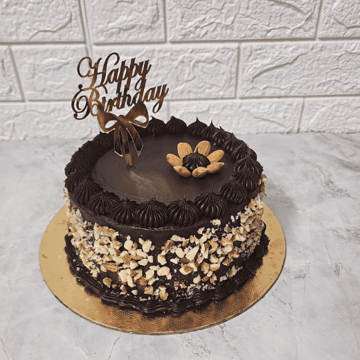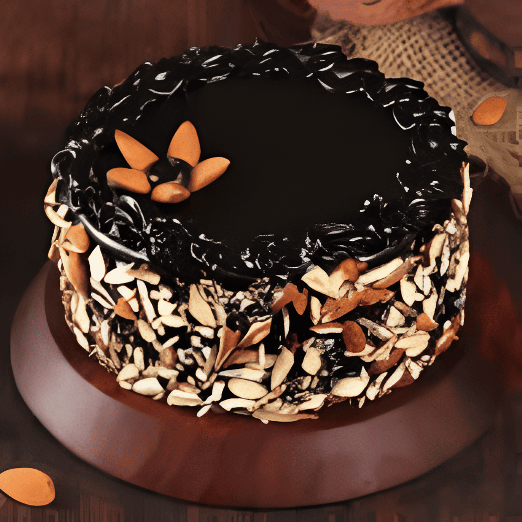 Our Choco Almond Cake is a delicious blend of rich chocolate and crunchy almonds, featuring a moist, fudgy cake topped with a creamy chocolate frosting and garnished with toasted almond slices for a perfect balance of flavors and textures.
