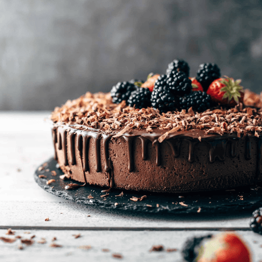 Our Chocolate Mousse Cake is a decadent dessert featuring a light, airy chocolate mousse layered over a rich chocolate cake base, finished with a silky ganache for a perfect, indulgent treat.