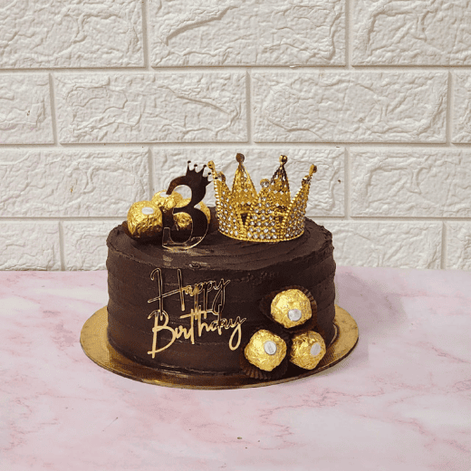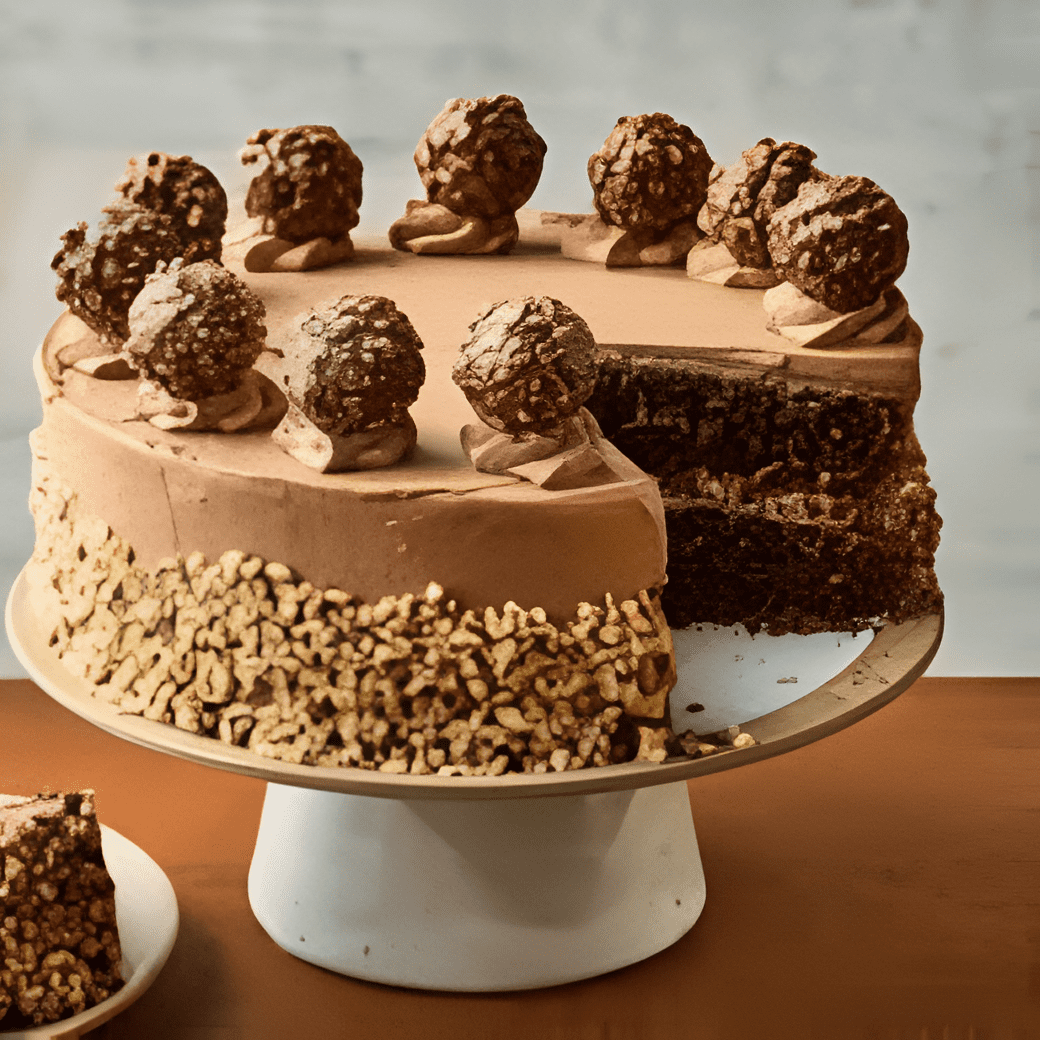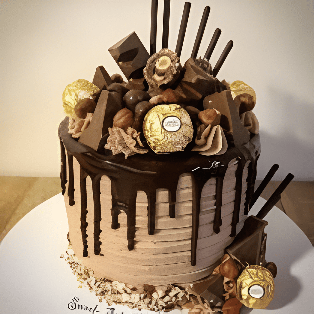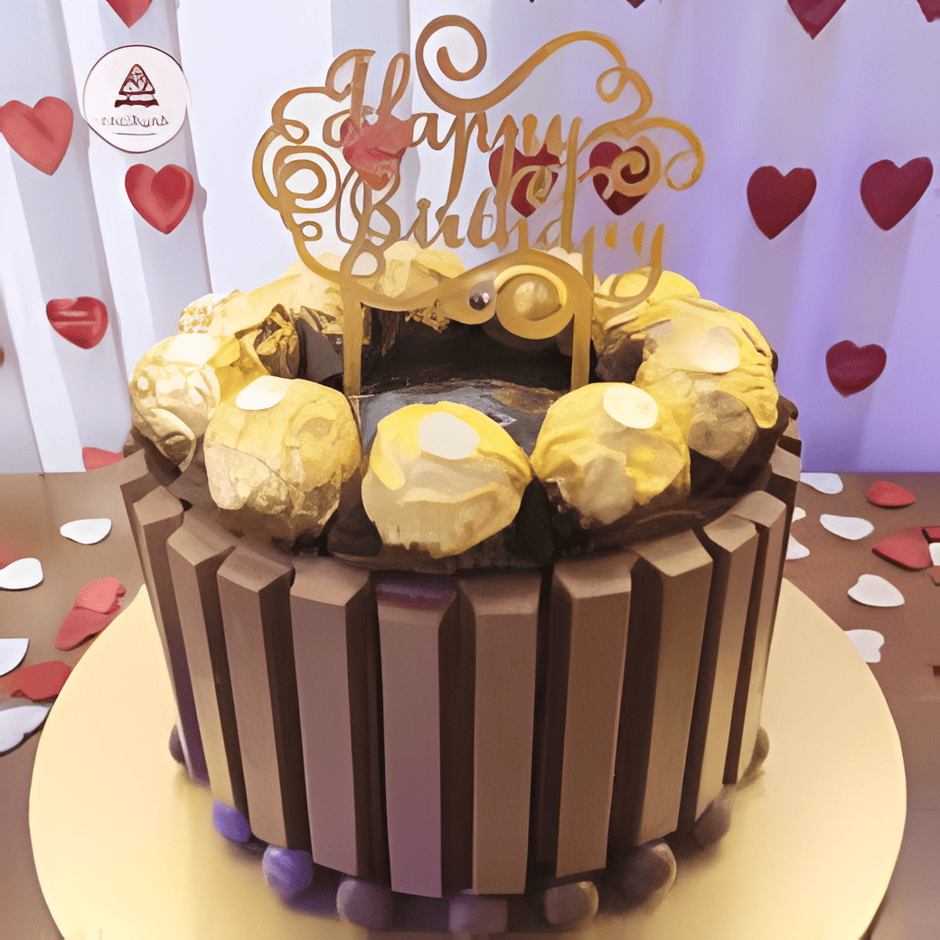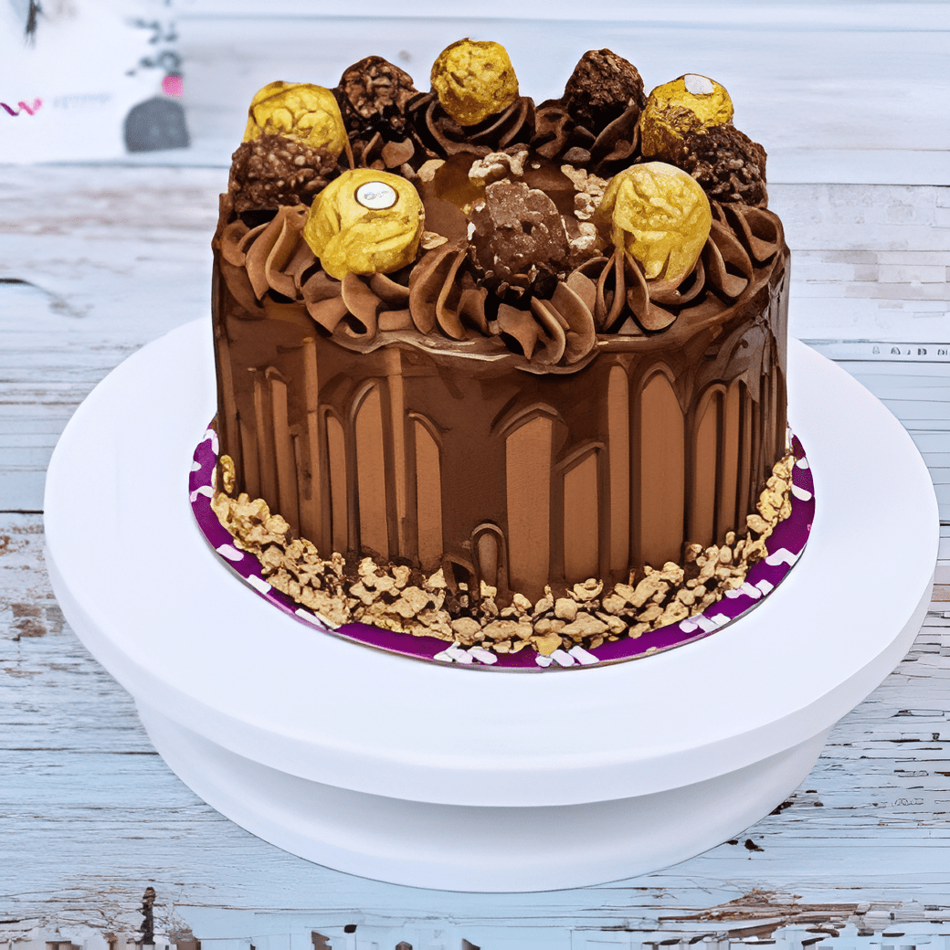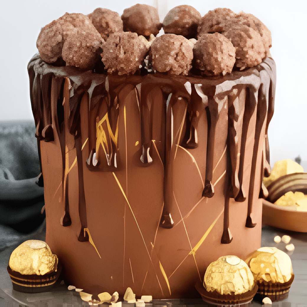 Our Ferrero Rocher Cake is a sumptuous treat with layers of rich chocolate cake, creamy Nutella filling, and crunchy hazelnut pieces, all topped with a luxurious Ferrero Rocher ganache for an irresistible flavor experience.