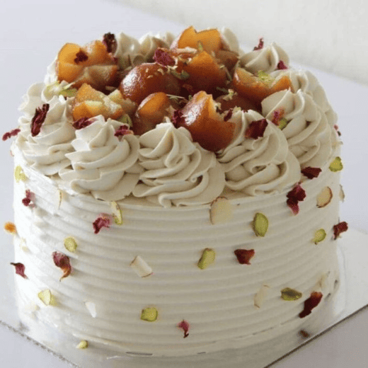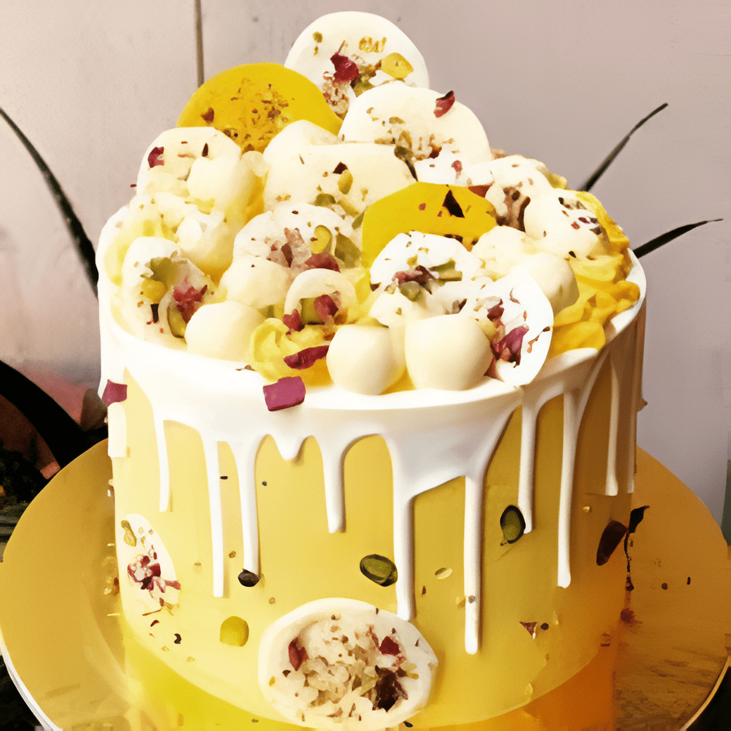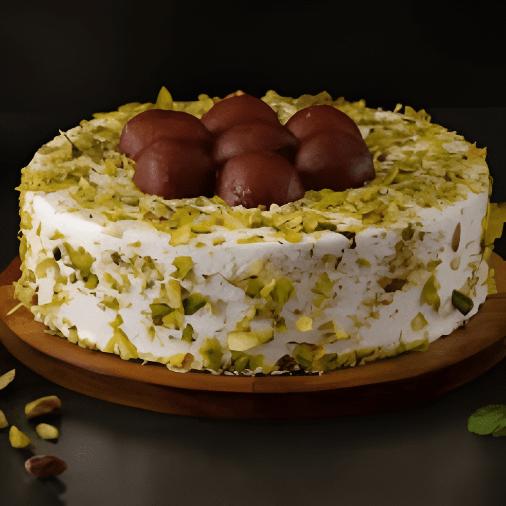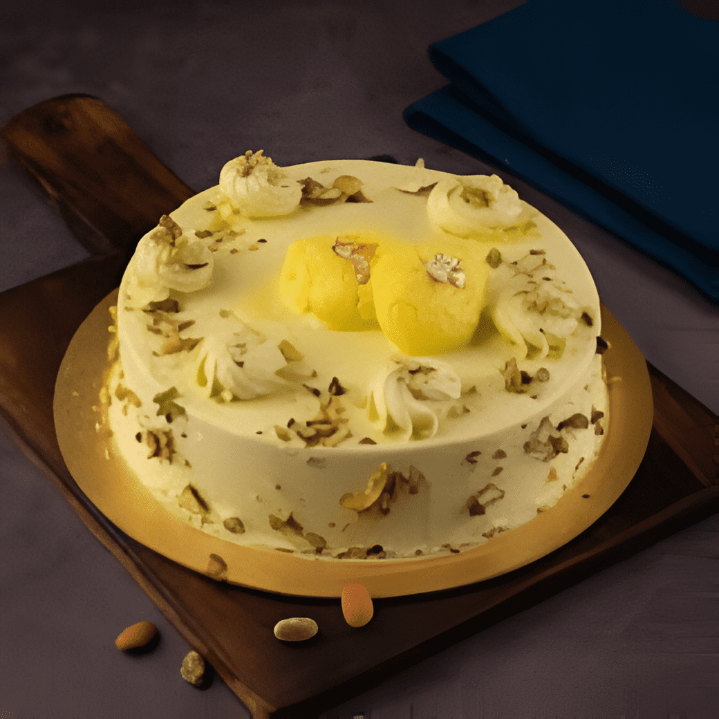 Our Rasmalai Cake is a delightful fusion dessert that combines soft, spongy cake layers with the rich and creamy flavors of traditional rasmalai, topped with a saffron-infused frosting and garnished with pistachios and rose petals for an authentic and indulgent taste.