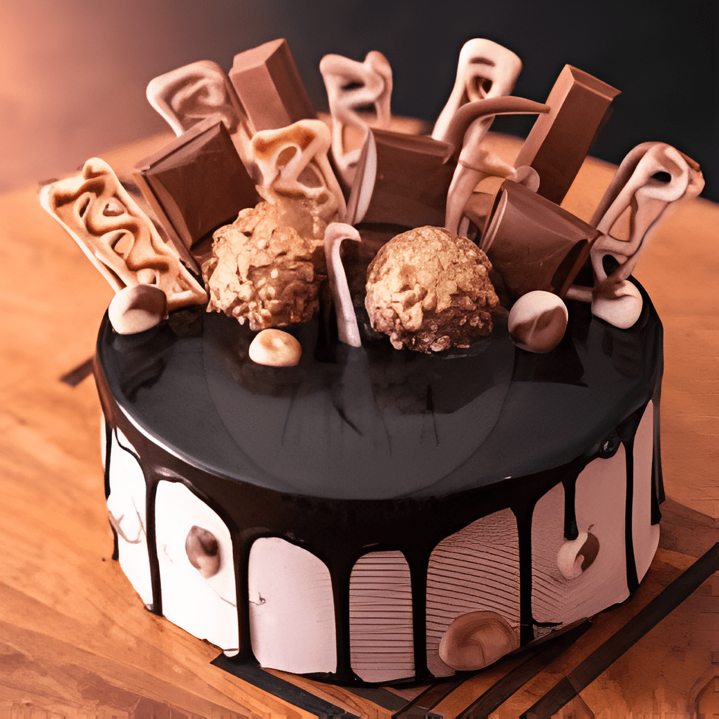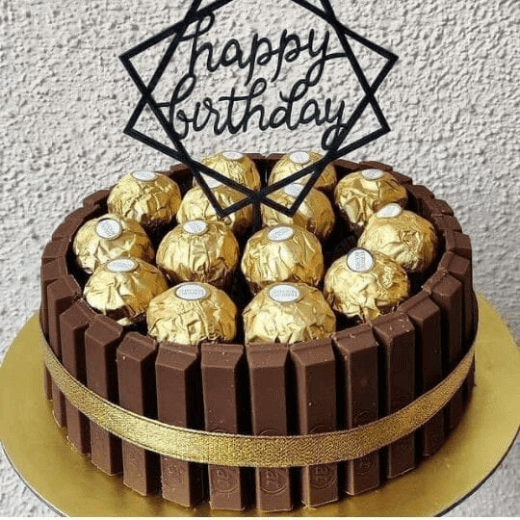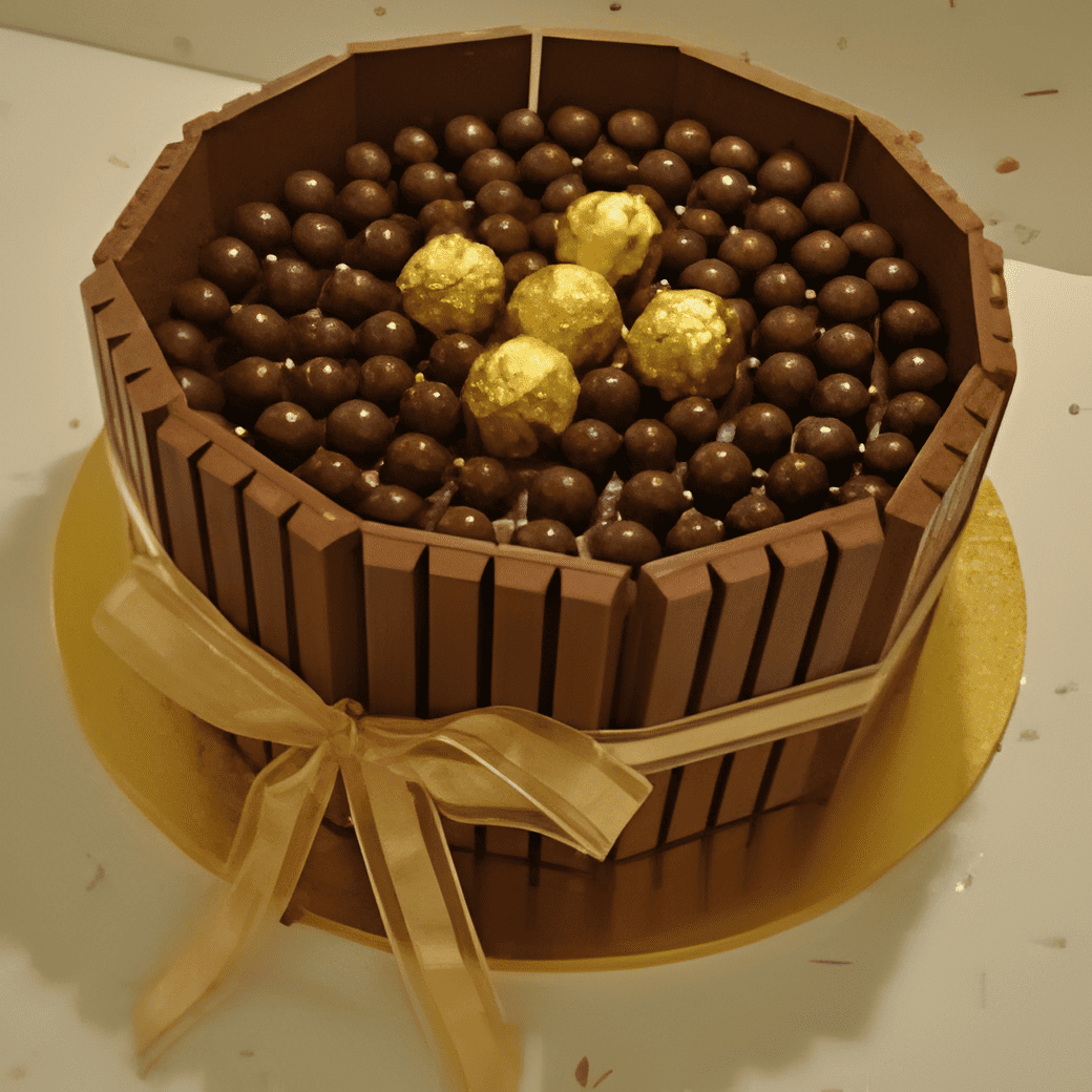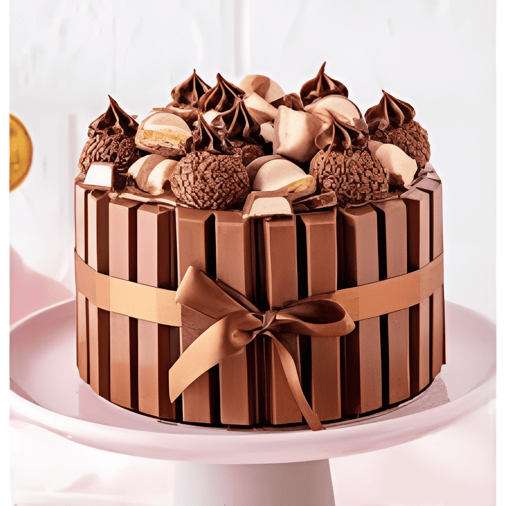 Our KitKat Ferrero Rocher Cake combines layers of decadent chocolate cake with creamy Nutella filling, adorned with crispy KitKat bars and topped with Ferrero Rocher chocolates, creating a rich and indulgent dessert that's perfect for any celebration.