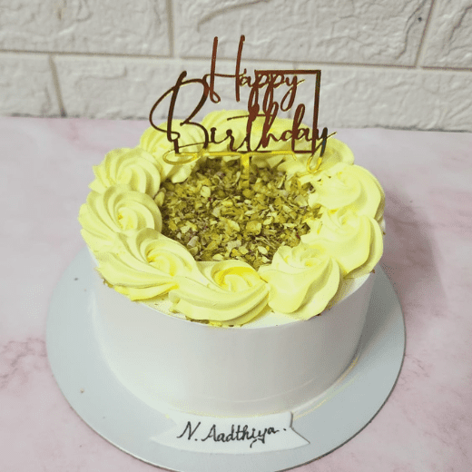 Our Pistachio Cake is a moist and flavorful treat with a rich pistachio-infused batter, topped with a light pistachio frosting and garnished with crushed pistachios for a delightful nutty flavor and a touch of elegance.