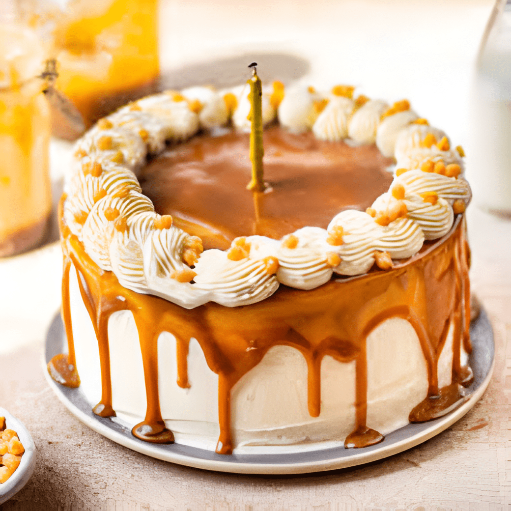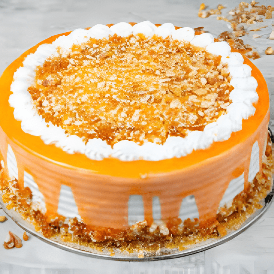 Our Butterscotch Cake is a moist, buttery delight with a rich, caramel flavor and a light, fluffy texture, topped with a smooth butterscotch frosting for a decadent treat.