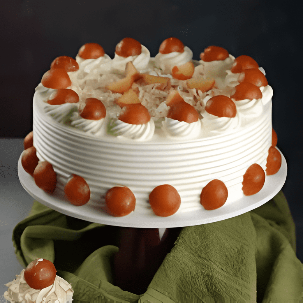 Our Gulab Jamun Cake is a delicious fusion of classic flavors, featuring a moist cake infused with rosewater and cardamom, and layered with syrup-soaked gulab jamuns. This 4 kg cake offers a rich, aromatic experience that combines traditional Indian sweets with modern dessert elegance, making it a standout choice for any significant occasion.