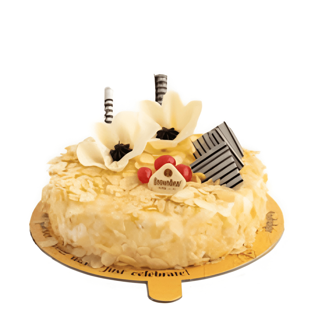 Our Honey Almond Cake features rich almond layers infused with natural honey, creating a moist and flavorful treat. This 4 kg cake is elegantly topped with a generous honey drizzle and toasted almond slivers, offering a delightful balance of sweetness and nutty richness perfect for any grand occasion.