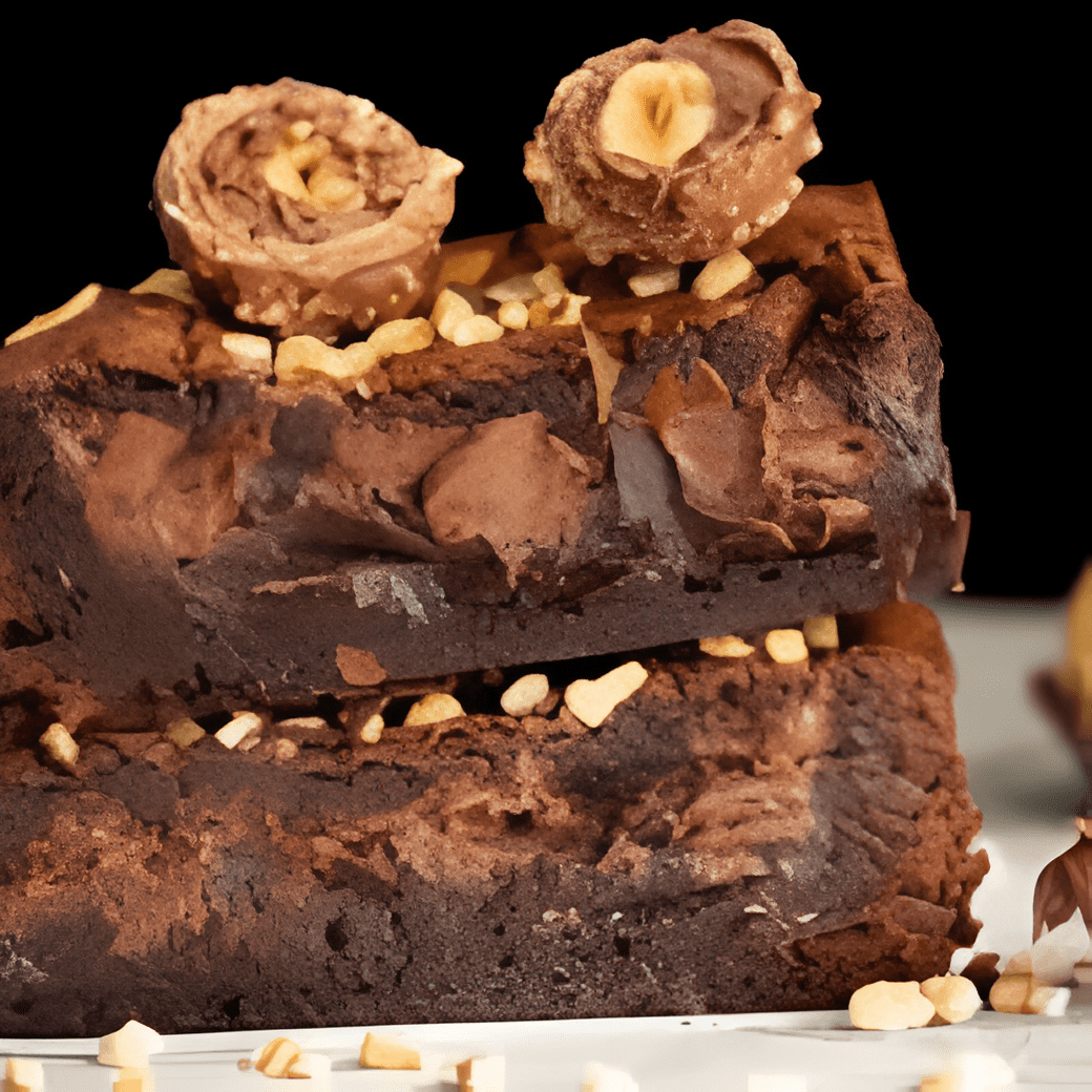 Our Ferrero Rocher Brownie combines a fudgy brownie base with the luxurious taste of Ferrero Rocher chocolates. Sized at 3x3 inches, each bite features a rich blend of chocolate and hazelnut, topped with whole Ferrero Rocher pieces for an extra indulgent touch.