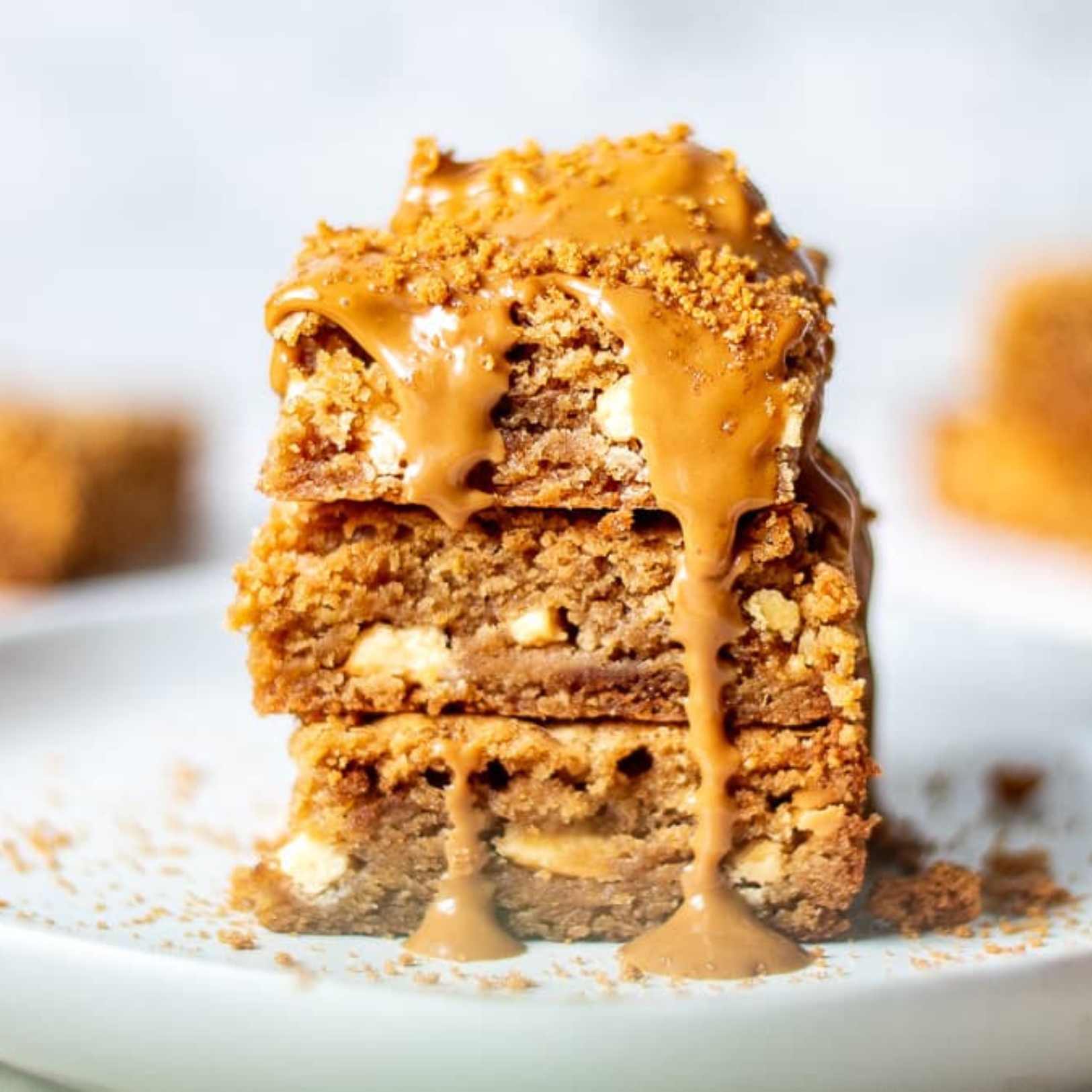Our classic blondie gets a delicious twist with Biscoff spread and cookie crumbles. Each bite combines the rich, buttery flavor of a traditional blondie with the sweet, spiced essence of Biscoff cookies. Perfectly chewy, irresistibly indulgent, and simply unforgettable.